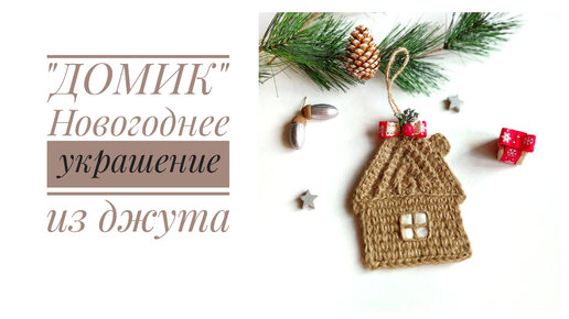 Новогодний эко декор из ДЖУТА. Вязаный ДОМИК крючком. Елочная игрушка своими руками. Украшение на елку.