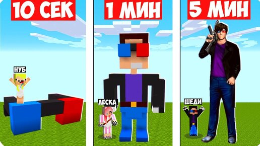 🔵🔴НУБ И ПРО СТРОЯТ ШЕДИ МЕНА ЗА 10 СЕКУНД 1 МИНУТУ 5 МИНУТ В МАЙНКРАФТ ШЕДИ ЛЕСКА И НУБИК MINECRAFT