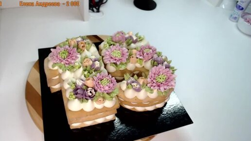 Оформление торта в виде цифры 15 кремовыми цветами_Cake design in the form of 15 cream colors