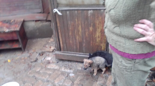 4 крошки, 4 хвостика, намокли все щенята под дождем, но влажный корм съели на "раз и два"