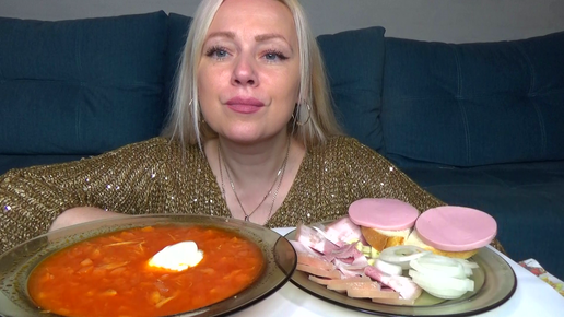Борщ с салом и чесноком! Бутерброды с колбасой. Еда.
