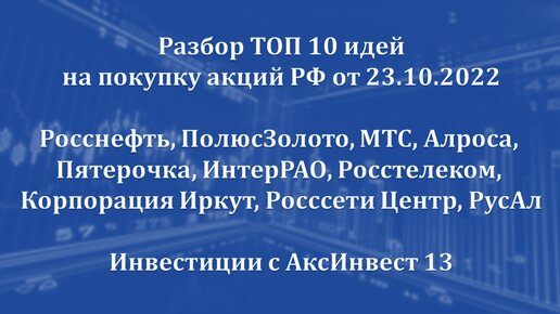 Разбор TOP 10 идей на покупку акций РФ от 23.10.2022 (Росснефть, ПолюсЗолото, МТС, Алроса, ВТБ)
