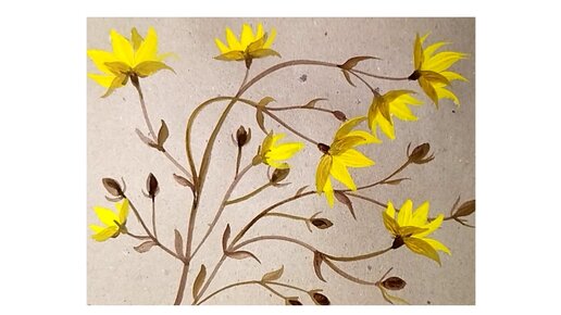 Стилизованные цветы, нарисованный коричневой и жёлтой гуашью.
