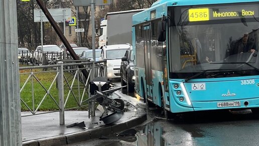КамАЗ сбил светофор при развороте на перекрестке в Красном Селе