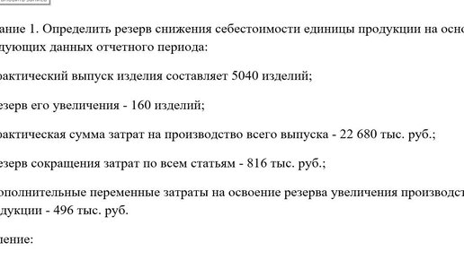 Разбор задачи по дисциплине " Анализ хозяйственной деятельности"
