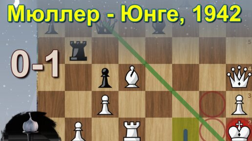 Немцы в войну тоже "шахматировали": интересная партия Клауса Юнге за черных против Мюллера. Ставит коня на доску с матом (Лейпциг, 1942, 0-1