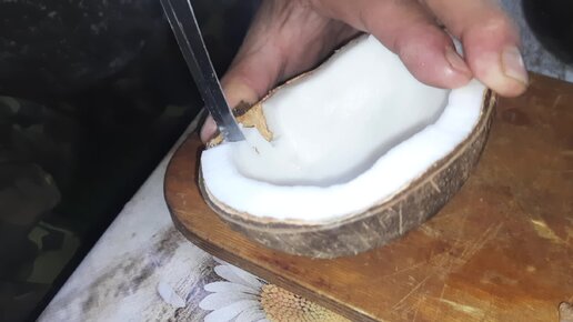 Купили кокос.Выпили сок,начали есть мякоть