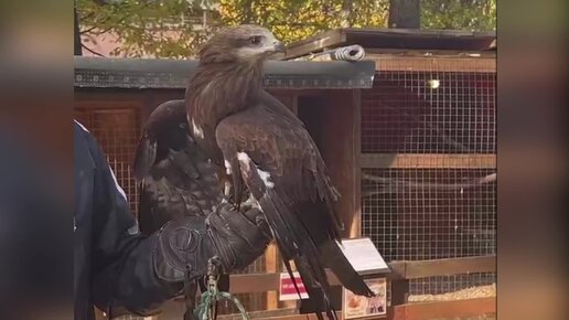 Черный коршун Веня в гостях у волонтеров. Новгородский соколиный двор под зоркой охраной ястреба