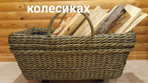 МК Прямоугольная корзина (дровница) на колесиках из искусственного ротанга