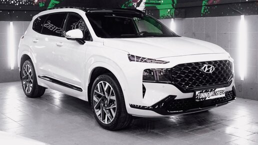 Hyundai Santa Fe оклейка морды в антигравийную пленку, антихром, тонирование оптики, шумка, керамика