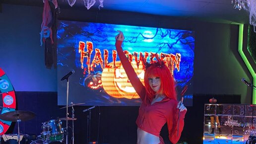 Танцы на праздник Хэллоуин в образе красной дьяволицы