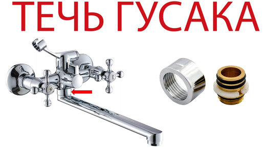Устранить течь гусака смесителя в ванной.