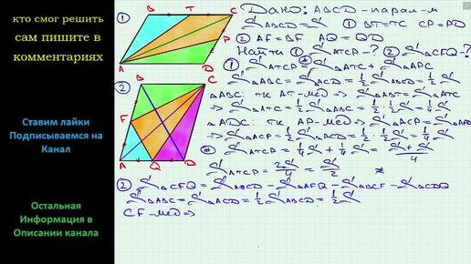 Геометрия Площадь параллелограмма ABCD равна S. Найдите площадь закрашенной фигуры (см. рис.)