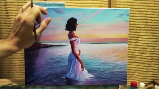 Девушка в воде маслом ускоренно|как рисовать фигуру человека #art #живопись