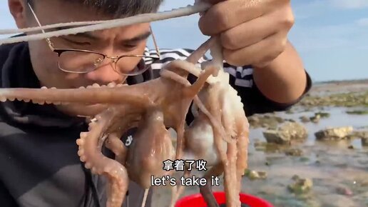 Много осьминогов прячутся на краю рифа