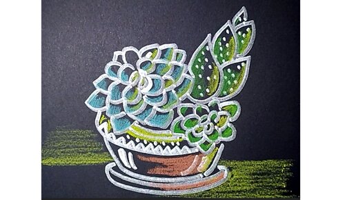 Суккуленты. Рисунок маркером металлик на черной бумаге.