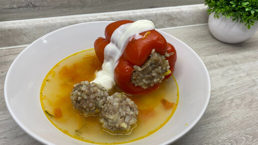 Фаршированные ПЕРЦЫ. И первое и второе блюдо в одной тарелке.