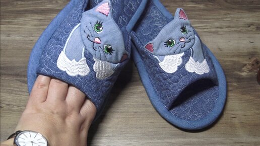 Машинная вышивка: Тапки котики.
