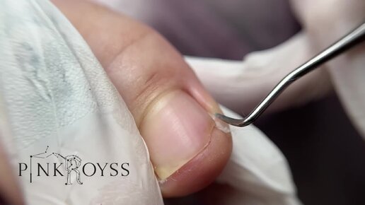 Очищаем пенкой PinkRoyss/ Убираем длину и скопившуюся кожу под ногтем/ Удаляем тампонаду/ Обрабатываем боковые валики/ Устанавливаем тампона