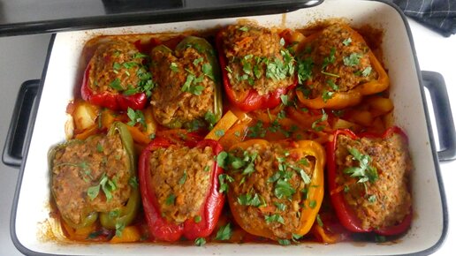 Фаршированные перцы на овощной подушке в духовке! Это не только вкусно ! Это еще и красиво!