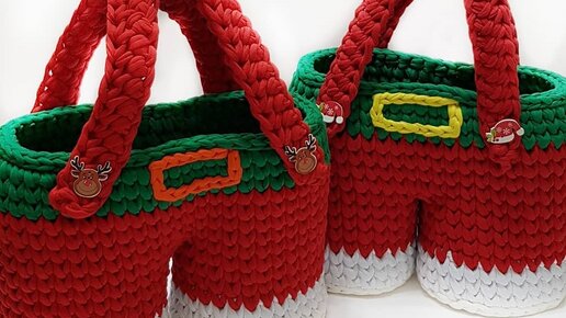 Новогодняя упаковка для шампанского / Штанишки Санты крючком часть 1 из 2