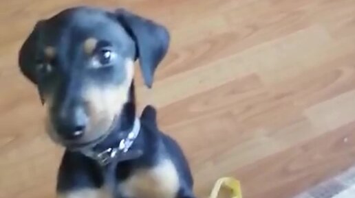 Маленький забавный Доберман подмигивает. Вы заметили? Из архива. Ганс.