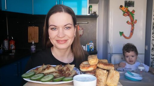 МУКБАНГ ВАРЕНИКИ С КАРТОШКОЙ, ЛУКОМ И БЕКОНОМ, СЫРНИКИ, БЛИНЫ/MUKBANG HALK FAMILY