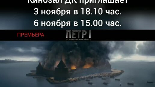 Кинозал ДК Гаврилов-Ямского МР приглашает с 3 ноября на фильм "Петр I Последний царь и первый император", 12+, 110 мин. Пушкинская карта