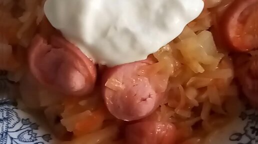 Сосиски с тушёной капустой.