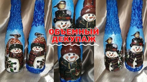 Очень легкий декор бутылки к новому году Объёмный декупаж