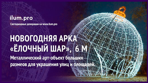 Большая, светящаяся, новогодняя арка с гирляндами «Ёлочный шар» диаметром 6 метров / Айлюм Про
