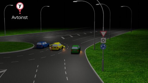 Кто из водителей нарушает ПДД при повороте направо на круговом движении?
