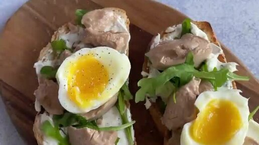 БРУСКЕТТА С ПЕЧЕНЬЮ ТРЕСКИ, РУККОЛОЙ и ЯЙЦОМ как у Аркадия Новикова
