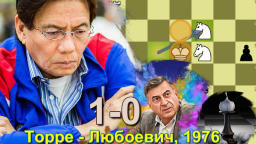 Эугенио Торре гениально играет ладьями и конями - ставит арабский мат белыми Любомиру Любоевичу в Маниле, 1976, 1-0х