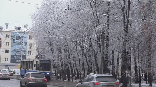 уфимский трамвай 1 НОЯБРЯ 2022 электротранспорт зимние пейзажи на улице после снегопада.