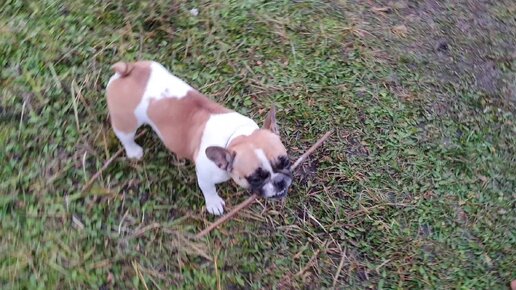 Французский бульдог Варя: играем в бобра