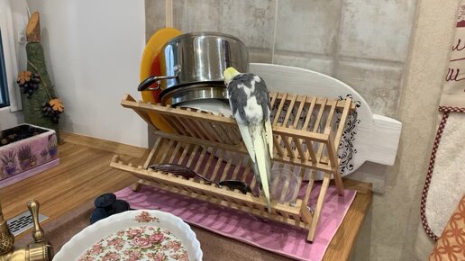 Наш Лукьян обзавелся персональной, дизайнерской ванной. То, что под это дело приспособили блюдо для выпекания, его ничуть не смутило🤣🦜