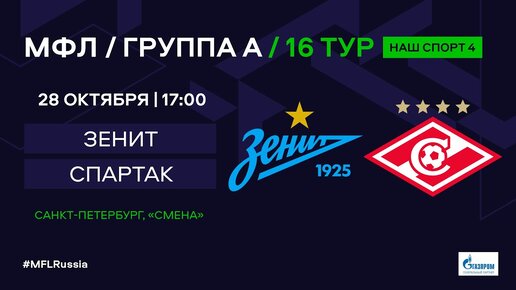 МФЛ. Зенит (Санкт-Петербург) - Спартак (Москва). Группа А. 16-й тур.