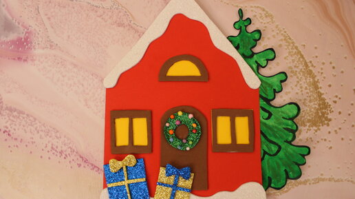 Новогодняя открытка ДОМИК своими руками.