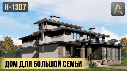 Прекрасный дом для большой семьи. Проект дома с бассейном, террасой, балконом и кабинетом