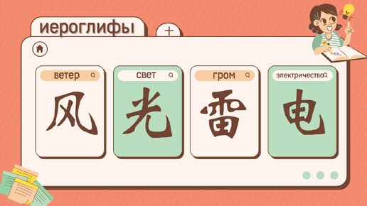 汉字识字 | Китайские Иероглифы | Простой и запоминающийся | Cерия видеороликов иероглифов для начинающих《风ветер光свет雷гром 电 электричество》