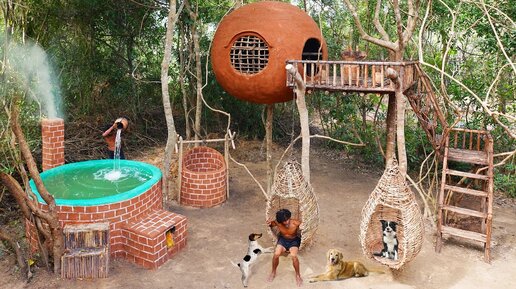 Постройте виллу шалаш на дереве с бассейном для себя и животных
