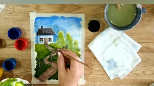 Домик Как нарисовать осенний пейзаж гуашью