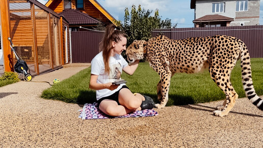 Чесалка-лизалка лучшее развлечение для гепарда Герды.