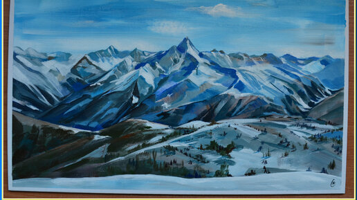 Как нарисовать горы. Горный пейзаж. Акрил