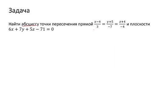 Нахождение координат точки пересечения прямой и плоскости в пространстве (В3)