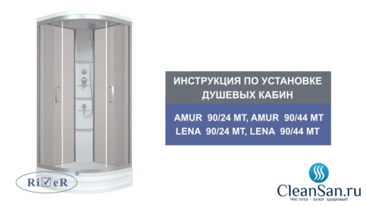 Виде инструкция по сборке угловых душевых кабин River Amur 90/24 и 90/44 МТ, а так же Lena 90/24 и 90/44 МТ