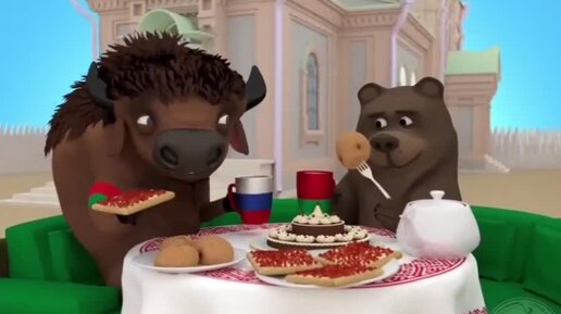 Украинский свин, просится согреться у медведя и Зубра. Шуточное видео