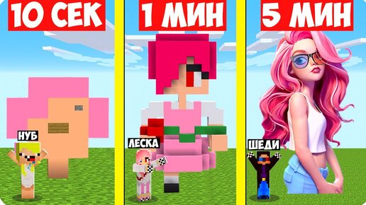 😍НУБ И ПРО СТРОЯТ ЛЕСКУ ЗА 10 СЕКУНД 1 МИНУТУ И 5 МИНУТ В МАЙНКРАФТ! ШЕДИ ЛЕСКА И НУБИК MINECRAFT