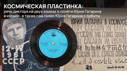 Космическая пластинка: голос Юрия Гагарина с орбиты и сообщение диктора о полёте первого космонавта на двух языках